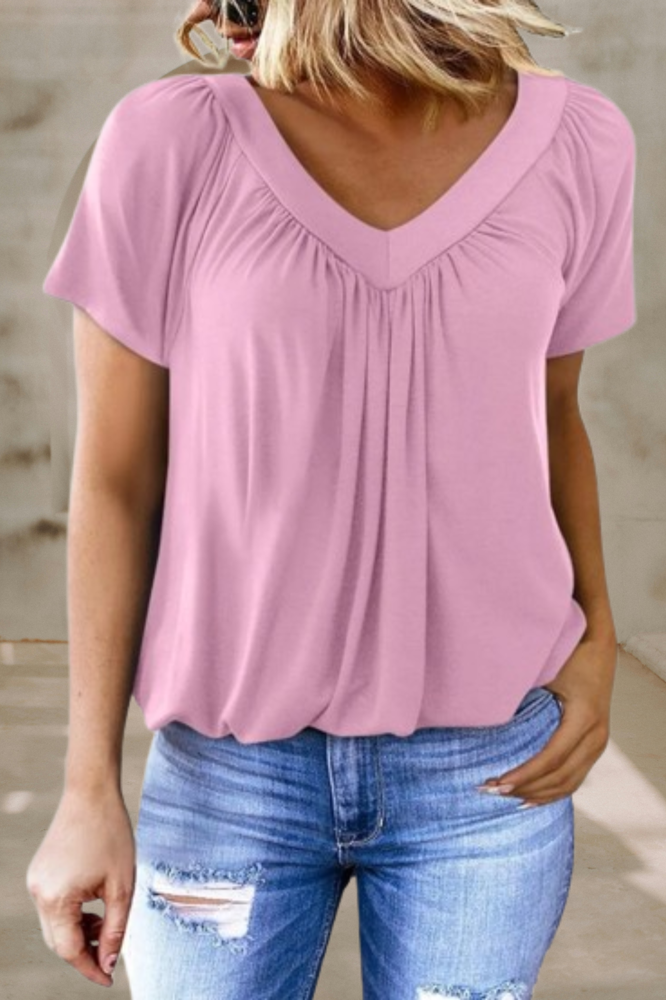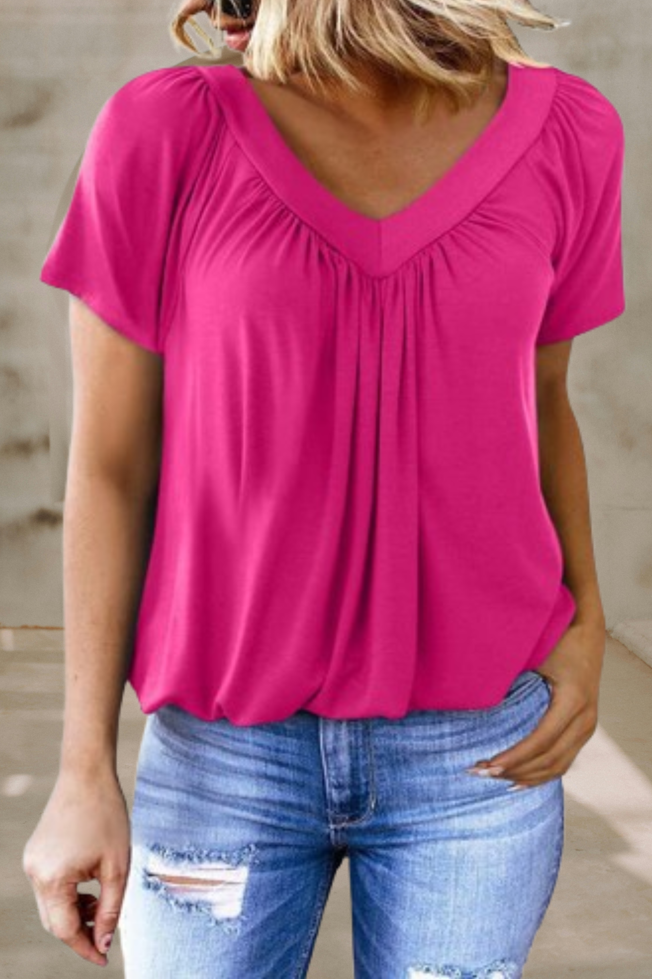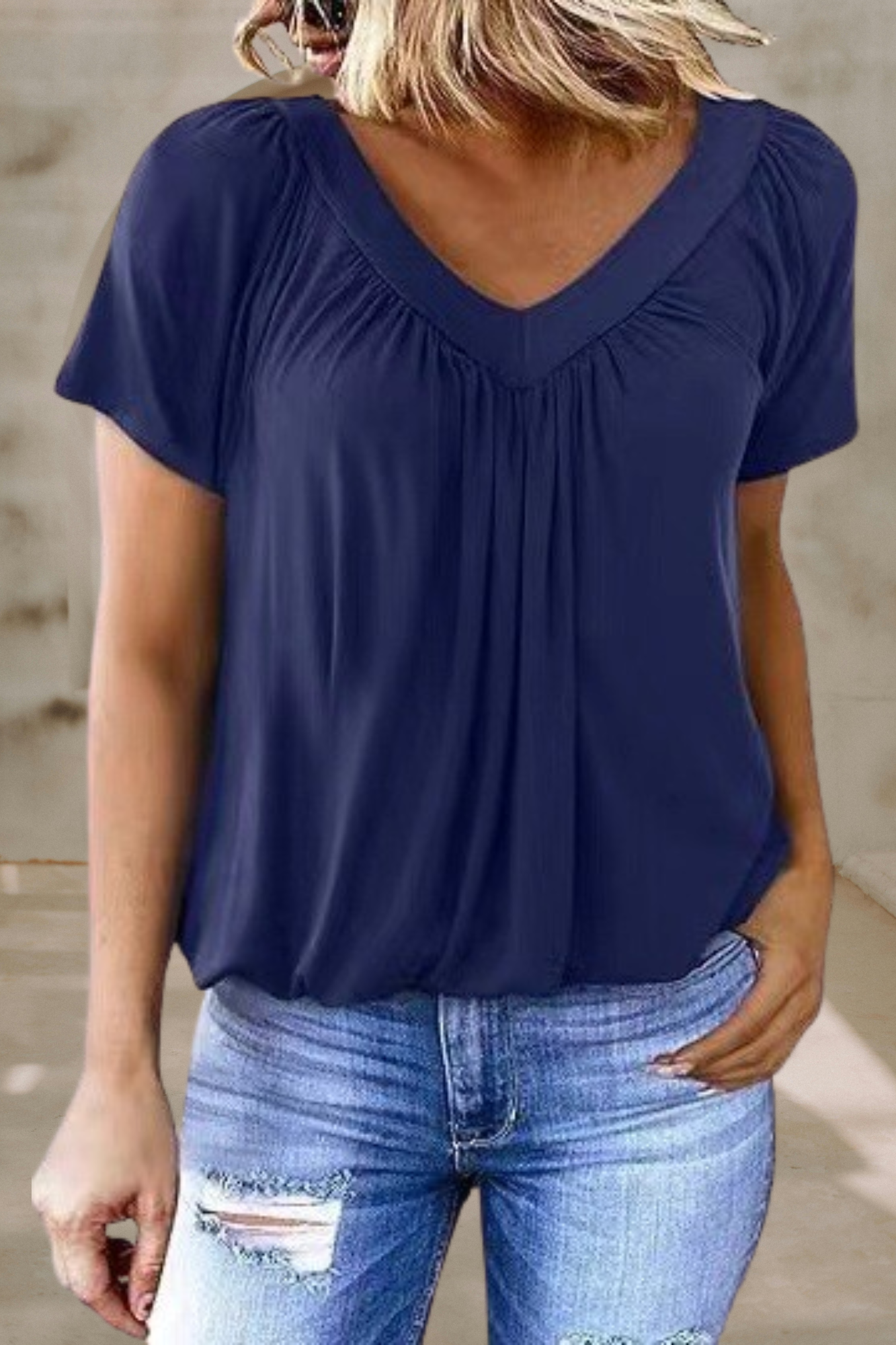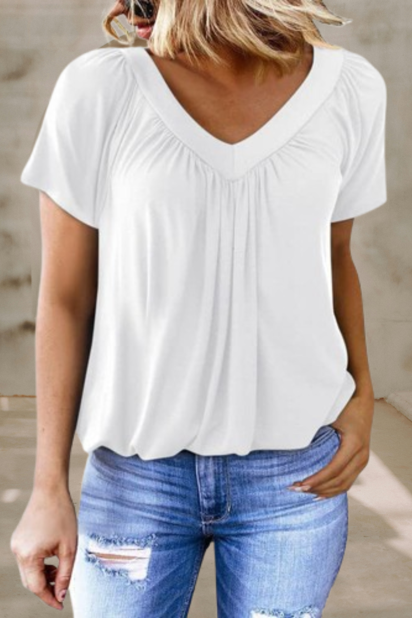 Haut Col-V À Manches Courtes - Élégance et Confort au Quotidien